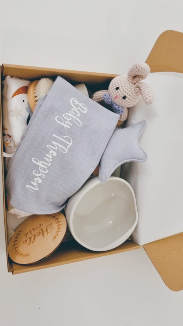 Personalized Comfort for Precious Moments: We believe in the power of personalization. That’s why our Feeding Time Baby Gift Box comes with a personalized comforter, bearing the baby’s name or a short, meaningful text. This special keepsake provides comfort and familiarity during feeding and beyond.