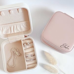 PU Leather Small Jewelry Box, Travel Portable Jewelry Case for Ring, Pendant, Earring, Necklace, Bracelet Organizer Storage Holder Boxes (Pink , White) Looking for the perfect small jewelry box to take on your travels? This PU leather case is just what you need! It’s spacious enough to store your rings, pendants, and earrings but compact enough to fit in your bag. Plus, the beautiful finishes and soft touch give it a luxury feel. Personalize it with your name, initials, or rhinestone letter for a delicate touch. This Personalized jewelry box is a perfect gift for any occasion. This delicate Small Jewelry Box 10 x 10 cm is perfect for organizing and storing your jewelry while you’re on the go. The deluxe synthetic PU leather exterior protects your jewelry from scratches, while the high-quality flannel interior prevents tangles and snags. The small size is perfect for carrying in your purse or suitcase, and the colors is sure to please. Whether you’re looking for a place to store your wedding ring when you travel or a safe place to keep your favorite necklace, this Small Jewelry Box is the perfect solution. Order yours today! This PU leather jewelry box is perfect for you! Its travel size is 3.9*3.9*inch/10*10*cm, so it is portable, lightweight, and easy to carry in your handbags or your luggage. The stylish design makes it an excellent gift for any occasion! There are also two compartments inside, so you can organize your jewelry however you like. The soft PU leather material protects your jewelry from scratches and damage. Order this cute and practical jewelry box today! You will love it! This jewelry box is perfect for anyone who likes to travel with their jewelry or keep their jewelry organized at home. The simple and compact design is ideal for storing rings, pendants, earrings, necklaces, and bracelets. The two removable dividers make it easy to customize the box to meet your needs. The elegant pink and snow white color makes this box a great gift for your bridesmaids, mother of the bride, birthdays, valentines, Christmas . The box has a sleek and stylish design and is available in various colors to suit your preference. The box’s interior is lined with soft velvet fabric, which helps prevent your jewelry from being scratched or damaged. The box has multiple different sizes compartments, making it easy to store all of your jewelry in one place. The lid of the box has little hangers and a pocket to store your necklaces without them getting tangled. This trendy jewelry box is ideal for any woman who loves to accessorize! The sleek PU leather exterior and soft velvet interior create a luxurious look and feel, while the sturdy construction ensures that your jewelry will be safe and sound. The box has multiple compartments of different sizes, so you can easily organize your rings, necklaces, pendants, earrings, and bracelets. And the compact design makes it easy to take with you on the go – perfect for travel or everyday use. Whether you’re looking for a unique gift or a stylish way to keep your jewelry collection organized, this box is sure to please. The PU Leather Small Jewelry Box is perfect if you are looking for a small, easy-to-carry jewelry box. It has a lot of compartments and pocket to store different types of jewelry. The colors makes it feminine and stylish. This would make an excellent gift for any woman in your life. Personalization options: Printing: Rhinestone Letter ( silver) 5 x 5 cm approx Printing color : size 4 x 2 cm Gold Glitter Rose gold Glitter Silver Glitter Gold metallic Rose Gold metallic