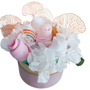 But the pampering doesn’t end there – our hamper also features an incredibly soft personalized lovie and a plush toy with a soothing music box. These cuddly companions are crafted from the gentlest materials, providing comfort and companionship to your precious one.