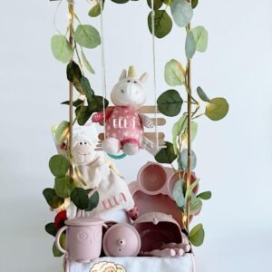 Our Luxury Swing Nightlight Baby Hamper is a delightful ensemble curated to pamper your little one with love and luxury. Crafted with the utmost care and attention to detail, this exquisite hamper is the perfect blend of practicality and charm, making it an ideal gift for new parents or a cherished addition to your own nursery.