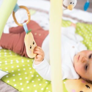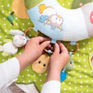 This magical quilt is not only a cherished addition to your own baby’s world but makes an ideal gift for baby showers, christenings, or those precious first birthdays. It comes complete with five delightful removable figurines – Owl, Rabbit, Apple, Pear, and Pea, adding even more excitement and versatility to your child’s playtime.