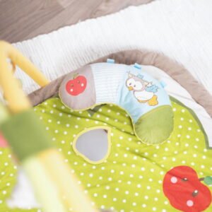 Safety is paramount, and the Activity-Quilt is crafted with your baby’s well-being in mind. The padded edge provides a protective barrier, ensuring optimal safety during playtime. This quilt is perfect for babies aged 3 months and older, providing a comfortable tummy time experience while also promoting the development of crucial neck, back, and throat muscles, helepd by the soft play cushion included in the bundle.