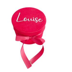 This christmas chocolate box a beautiful velvet box personalised with name on the lid. It is reusable. it contains 7 chocolate  candy ( , Raffaello, ferrero rocher)nested on a beautiful sparkly tinsel. it is a perfect as a gift for any chocolate lover , a friend or a family member. Personalise the velvet box with name and it will be perfect  little storage container to be used after christmas too. The diameter of the box 12 cm.The size of the printing is about 9 x 5 cm , it can vary depending on the length of the name.