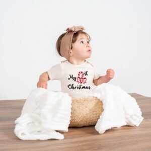 This cute short sleeved babysuit is made of sutainable coton that feels ever so soft on baby’s skin. It is suitable for newborn babies up to 3 month. Choose from 2 designs. My 1st Christmas or Baby’s name 1st Christmas.